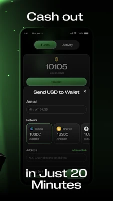 • Cash Withdrawals: Get paid in cash via secure USDC payments
