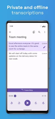 Everything is transcribed on your device. Download the language pack that you need, then transcribe directly on your device, privately and without an internet connection.