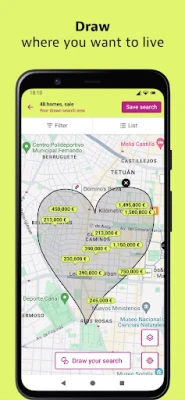 • Draw your preferred area directly on the map. Open the idealista map and draw with your finger the area where you'd like to live. All available listings will appear instantly, along with their prices, so you can compare them at a glance. It's that simple.