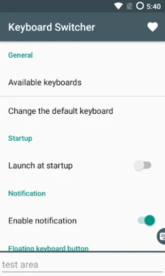 Keyboard Switcher is a keyboard selection application, it allows to switch easily from the current keyboard to another in several ways, thanks to a discreet floating button available on the screen, a shortcut, a tile, or a notification.