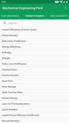 Thermodynamics Calculator contains 38 calculators, that can quickly and easily calculate different thermodynamics and thermal engineering parameters. Automatic and accurate calculations and conversions with every unit and value changes.