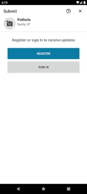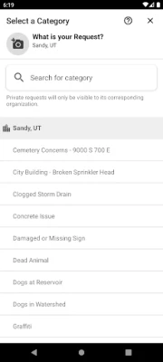 Sandy CityServe is a real-time mobile civic engagement platform. Sandy CityServe provides a free, simple and intuitive tool for you to report city issues to be resolved (like potholes or graffiti) or make requests for service or information (like park reservations or city event information). Snap a pic! Notify the city! Make a request! Just download and get started today!
